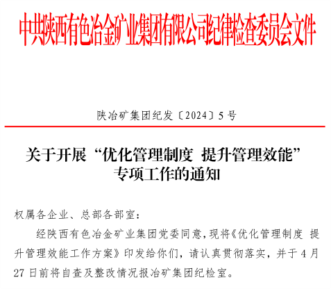 為把制度建設(shè)要求體現(xiàn)到全面從嚴治黨全過程、各方面、各層級,讓各項規(guī)章制度管得住、行得通、用得好、有成效,促進公司形成科學(xué)、高效、規(guī)范的現(xiàn)代管理體系,冶礦集團紀委以“關(guān)鍵少數(shù)”為主要對象,以檢查制度執(zhí)行為抓手,決定今年在全公司開展“優(yōu)化管理制度 提升管理效能”專項工作。重點查找執(zhí)行制度時打折扣、搞變通、審批不嚴、程序不規(guī)范等問題,或者干部利用職務(wù)上的影響,通過暗示、授意、指定等方式,違反公司規(guī)章制度的行為。